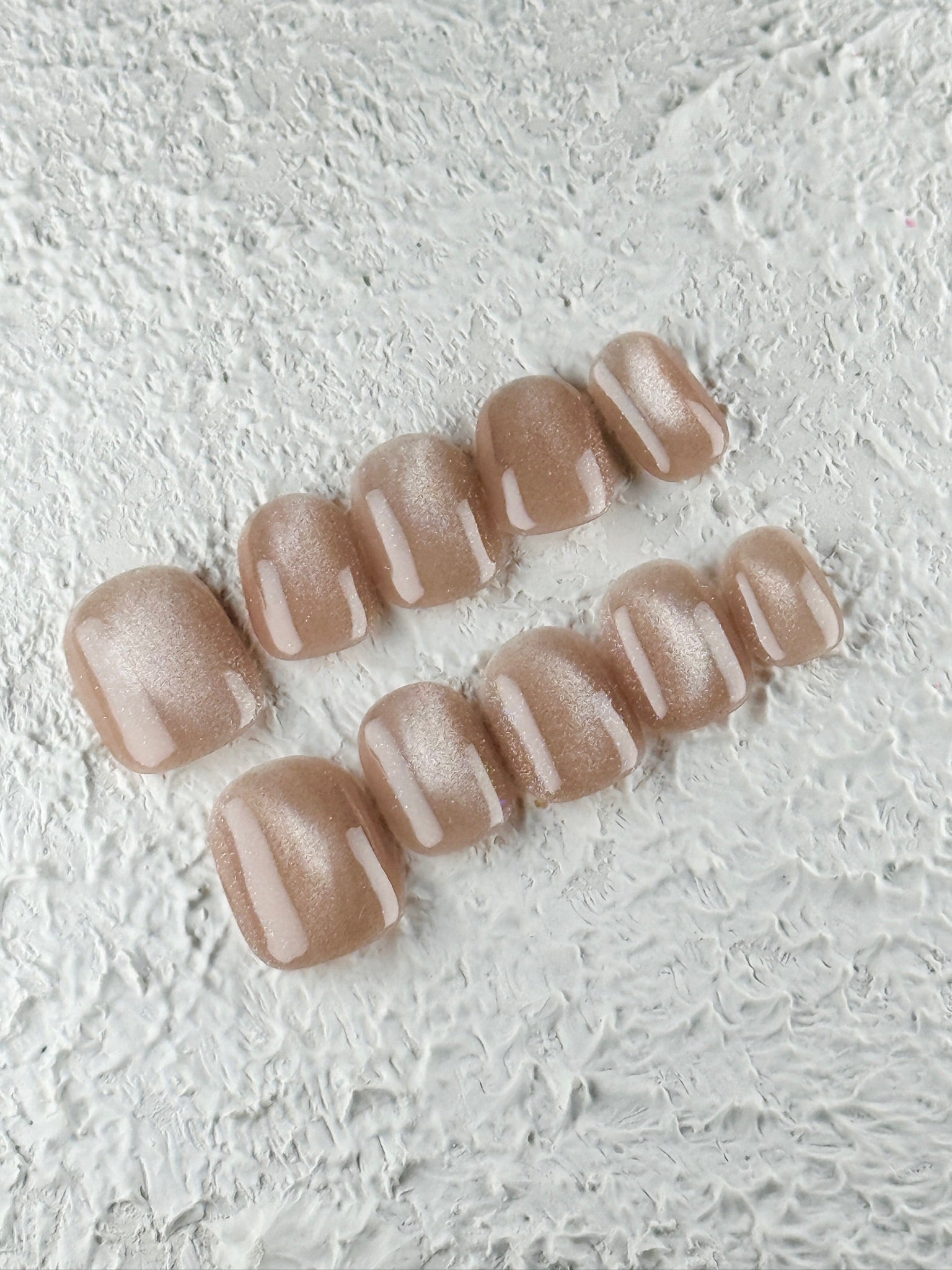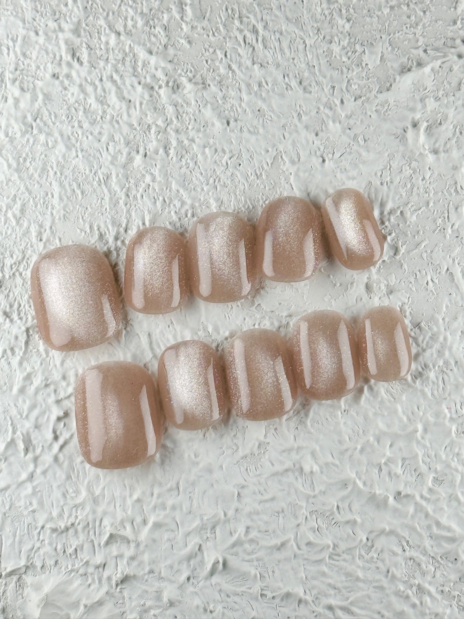 This 10-piece set blends a warm nude base with a subtle cat-eye shimmer that shifts beautifully under the light, giving your fingertips that “clean girl, soft luxe” glow. It’s the perfect everyday neutral. Polished enough for the office, chic enough for brunch, and timeless enough for any moment you want effortless elegance without trying too hard.