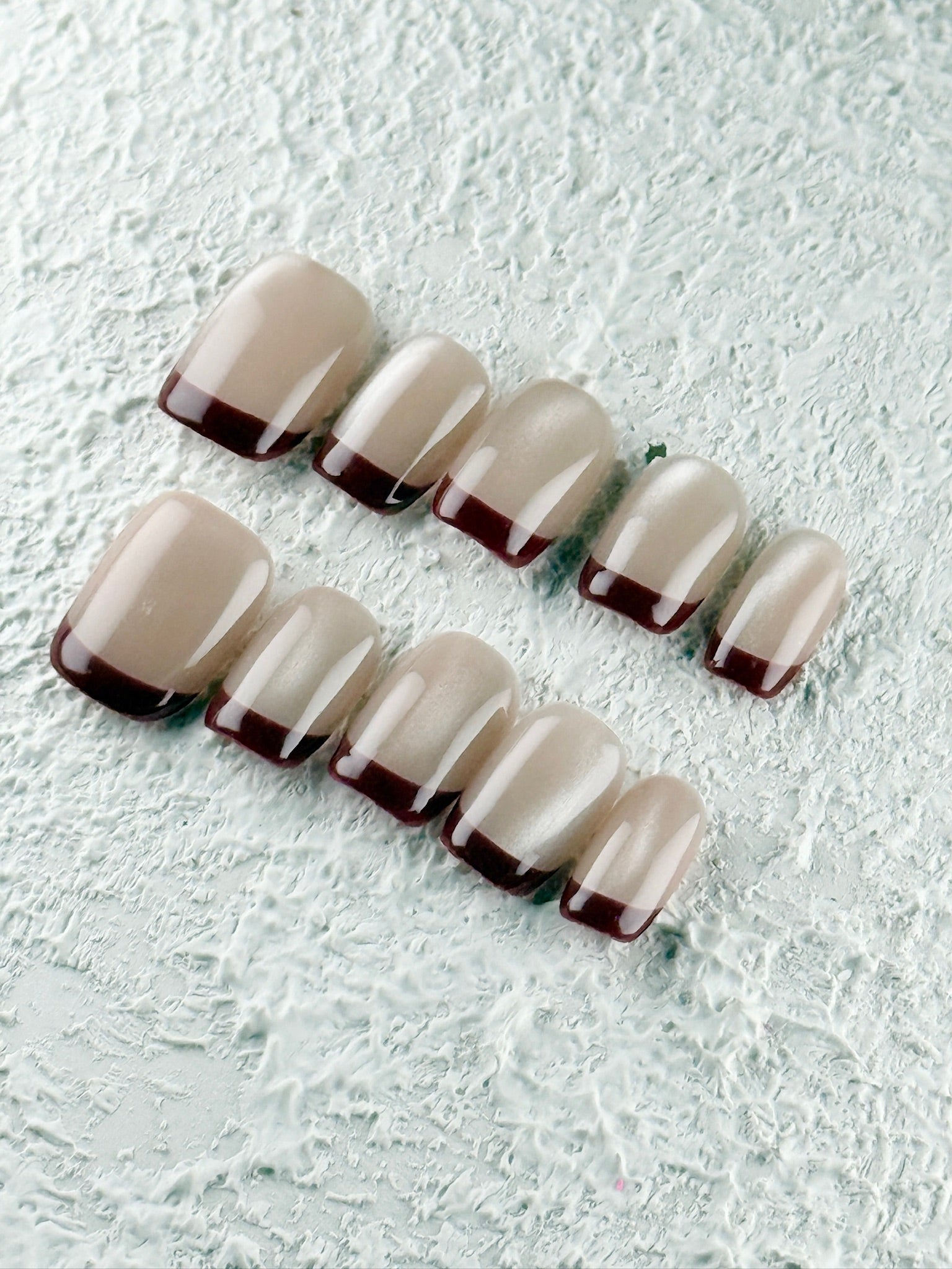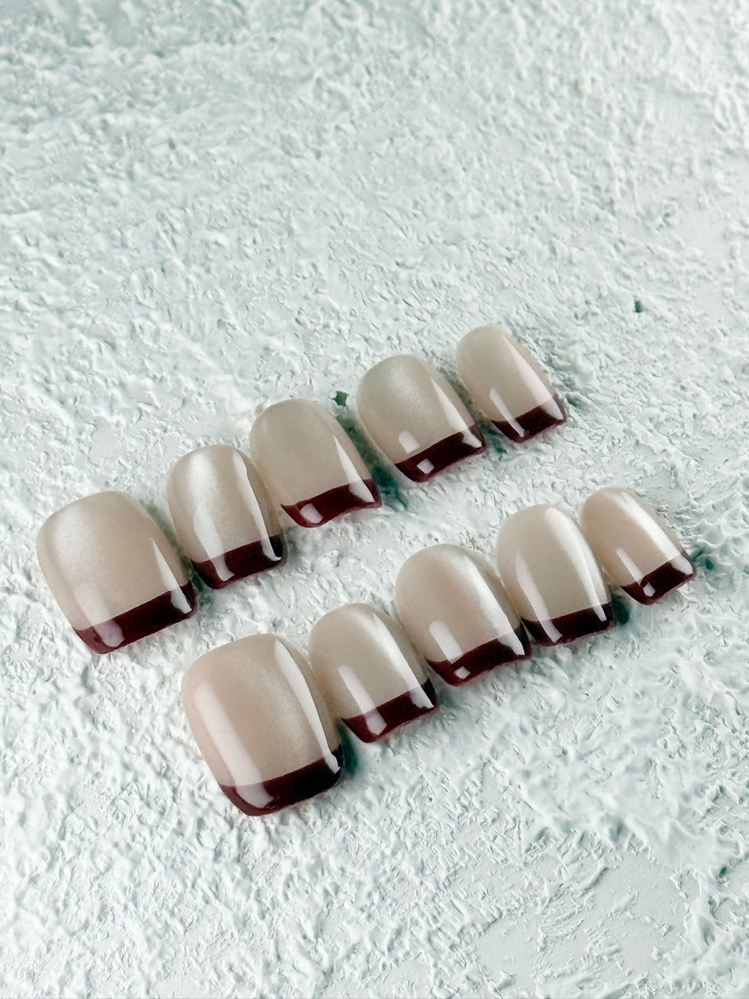 This 10-piece set features a deep ruby cat eye base that shifts and glows with every movement, paired with a crisp red French tip for that effortless “chic with an edge” finish. It’s bold without trying, elegant without effort, and instantly elevates any outfit from holiday dinners to nights out.